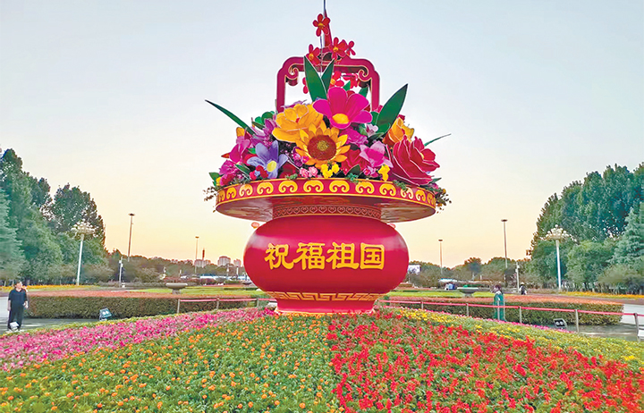 :“祝愿祖国”国庆花坛表态世纪广场国庆节临